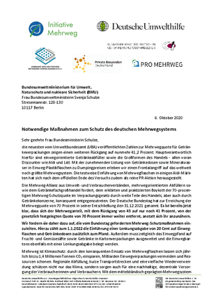 Mehrweg-Allianz richtet sich mit Brandbrief an Bundesumweltministerin Schulze